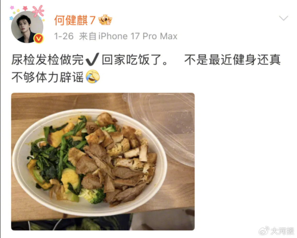 1月26日,何健麒再发文回应此事称“尿检发检做完,回家吃饭了。不是最近健身还真不够体力辟谣”。